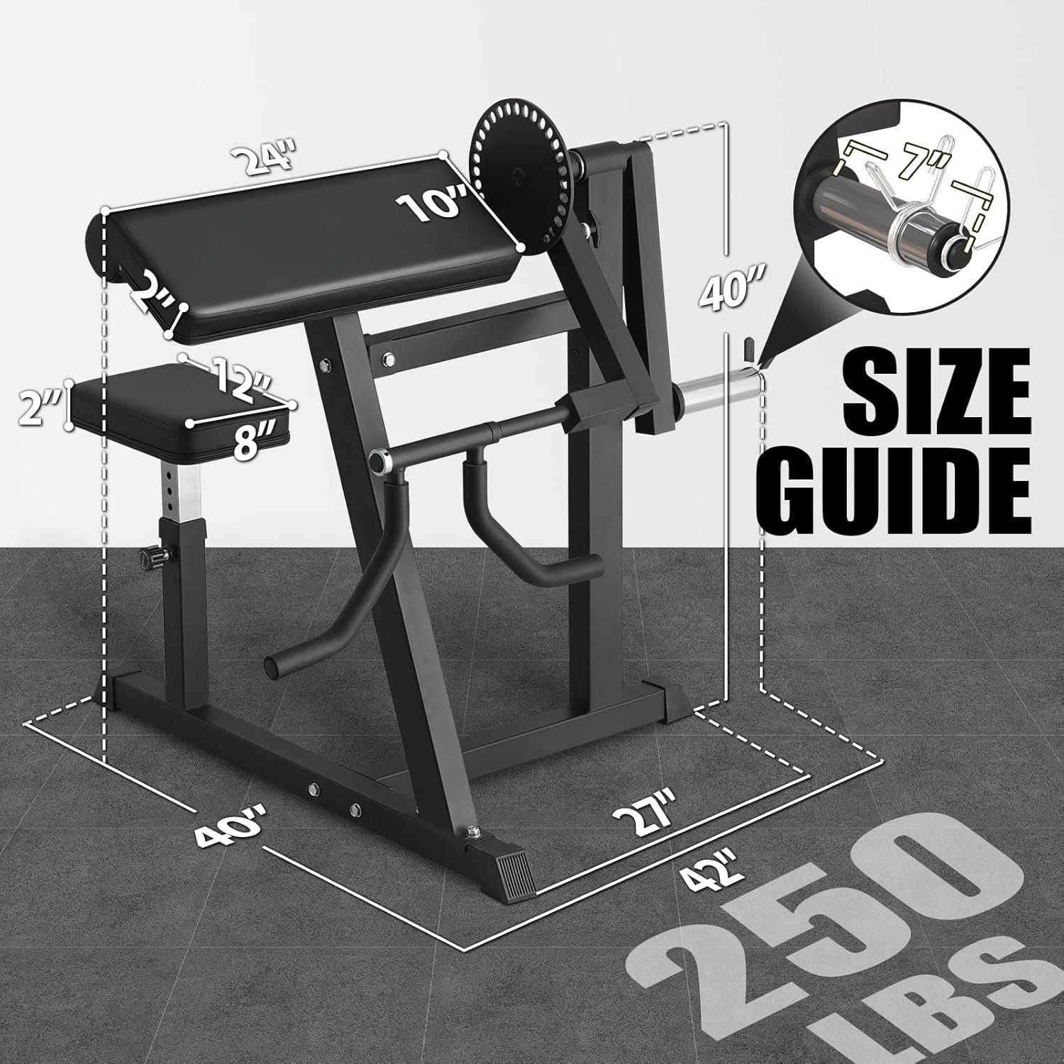 3 Adjustable Parts:12.4 “x8.5″, 2” thick seat pad has 7 adjustable heights to choose from, which can meet the needs of people of different heights. The multi-position sundial of the bicep tricep curl machine offers a wide choice of handle lengths – just toggle the pins to adjust to the right position for bicep curls/preacher curls and tricep extensions/pushdowns. The swiveling, soft handle has Three gripping angles to take the strain off your wrists and let you enjoy your arm-blasting workouts!