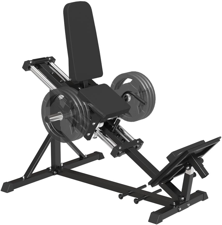 • 🔝【DURABLE CONSTRUCTION】: compact leg seld machine is build with 50mm x 70mm, 13 gauge steel. The main frame is reinforced by triangular structure, in oder to hold up to 1000lbs max acity, which offers great safety and lifetime use.The track is constructed with linear optical axis and 8 big PU wheels, you can enjoy smooth movements when training. Its high-quality steel structure provides exceptional stability, making it a reliable fitness equipment. Join us and start your leg day!