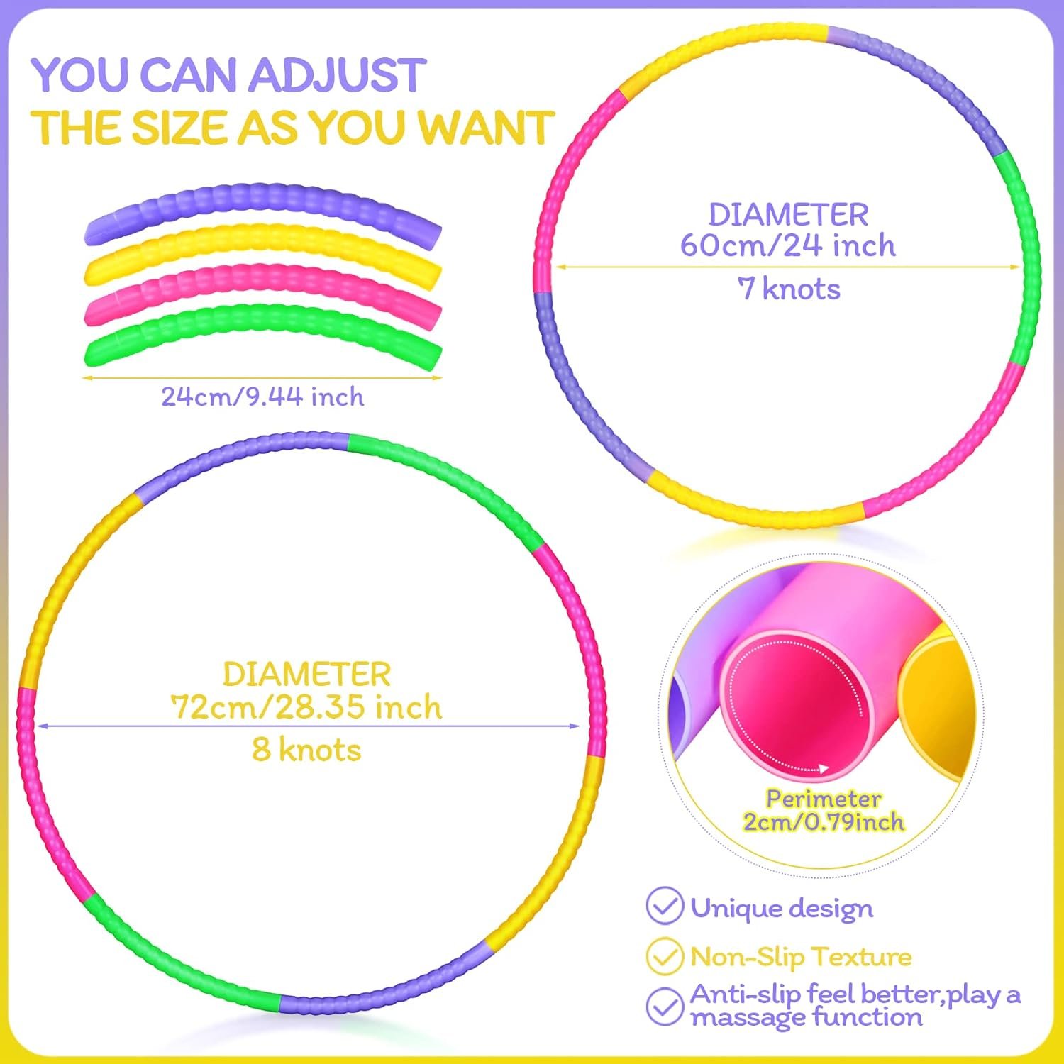 - 8 Exercise Hoops: this set comes with 8 x detachable hoop ring, and each plastic hoop consists of 8 parts, meeting your daily needs and play